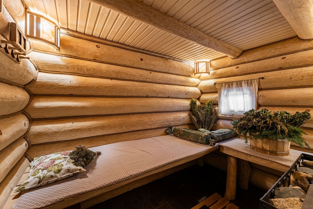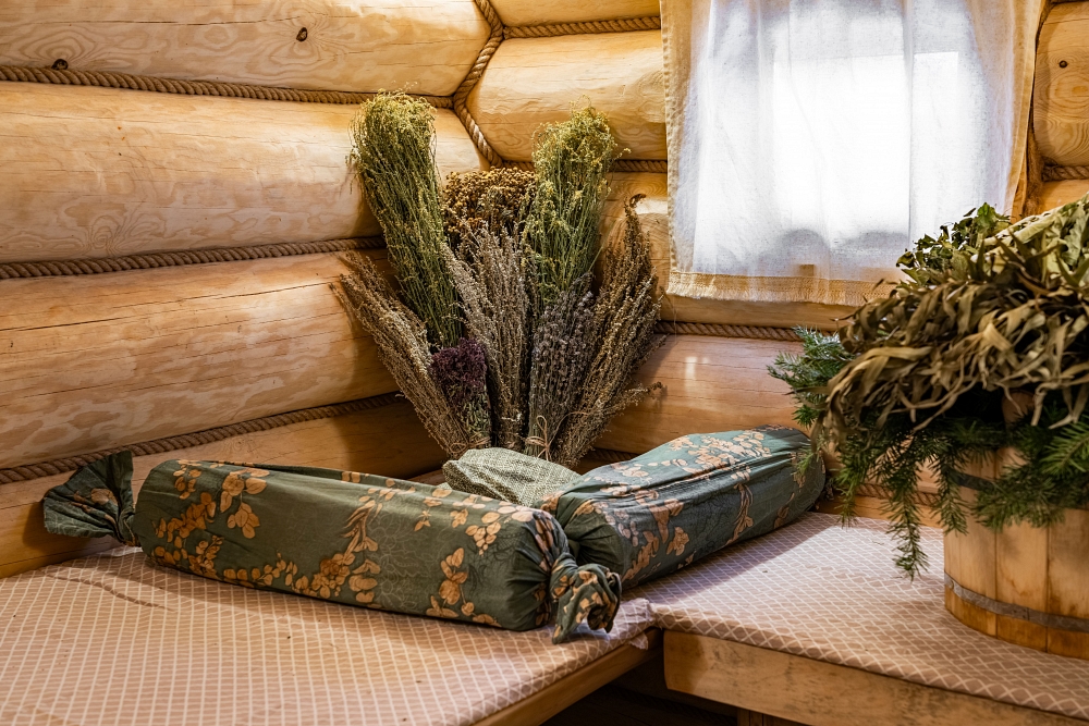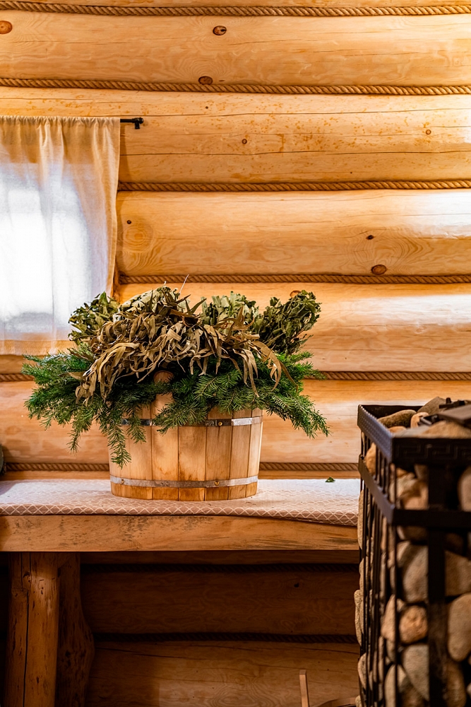 - Просторная парная с ароматными вениками из березы, дуба и эвкалипта.